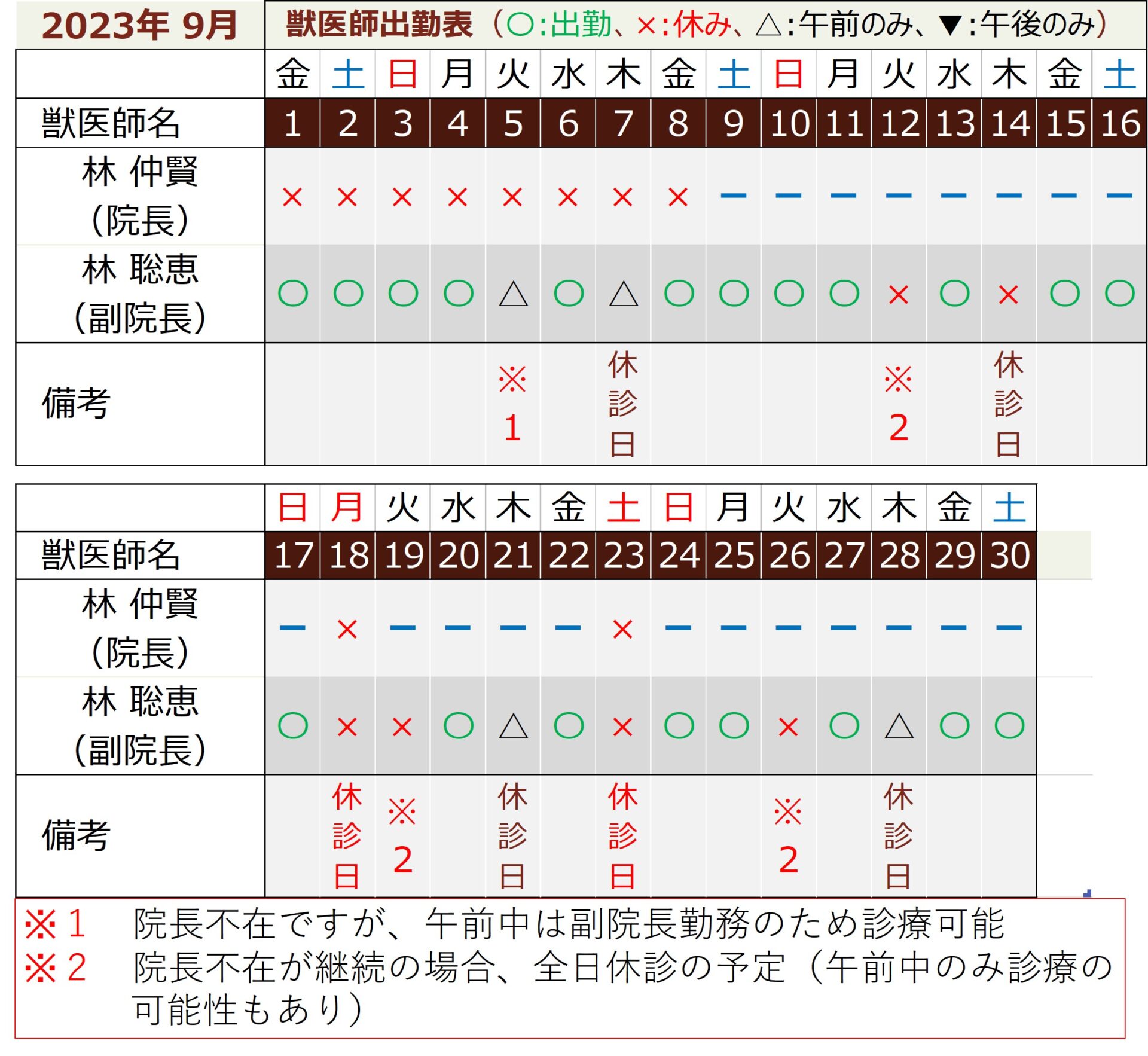 そのため、院長のみでの診療日であった火曜日については、午前中のみの診療あるいは休診となる予定です。9/5㈫については、午前中のみ診療いたしますが、それ以降は現時点では未定です。