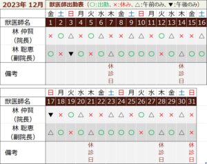 なお、12月31日㈰~1月3日㈬まで年末年始の休診をいただきます。(1/4は木曜日のため休診)