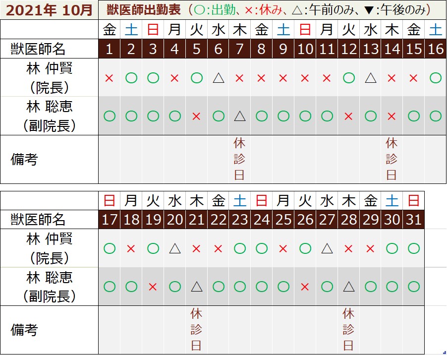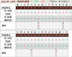 今月(12日以降)はほぼ通常通りですが、14日㈭は所用のため副院長が不在となりますので全日獣医師不在(診療不可)となります。ご迷惑をお掛けしますがよろしくお願い致します。
